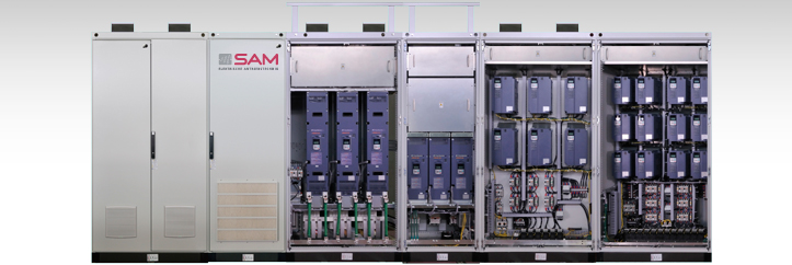 Ob kleiner Steuerschrank oder komplexer anschlussfertiger Schaltschrank bis 3000 kW Motorleistung – SAM verwirklicht wirtschaftliche Antriebssysteme. SPS-Steuerungen und Visualisierungen erhöhen bei Bedarf die Funktionalität